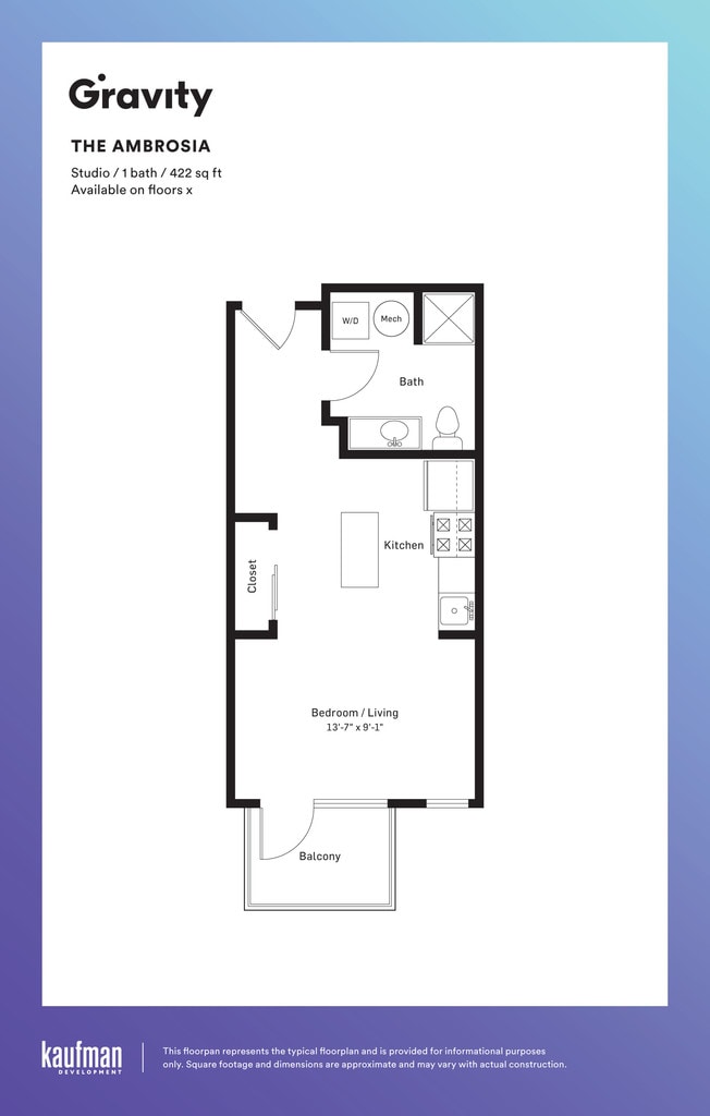 Ambrosia - Floorplan 2 Apartment Unit: A-604Apartment Model: Ambrosia$855Studio, 1 Bath, 422 sq ftAvailable NowExplorer