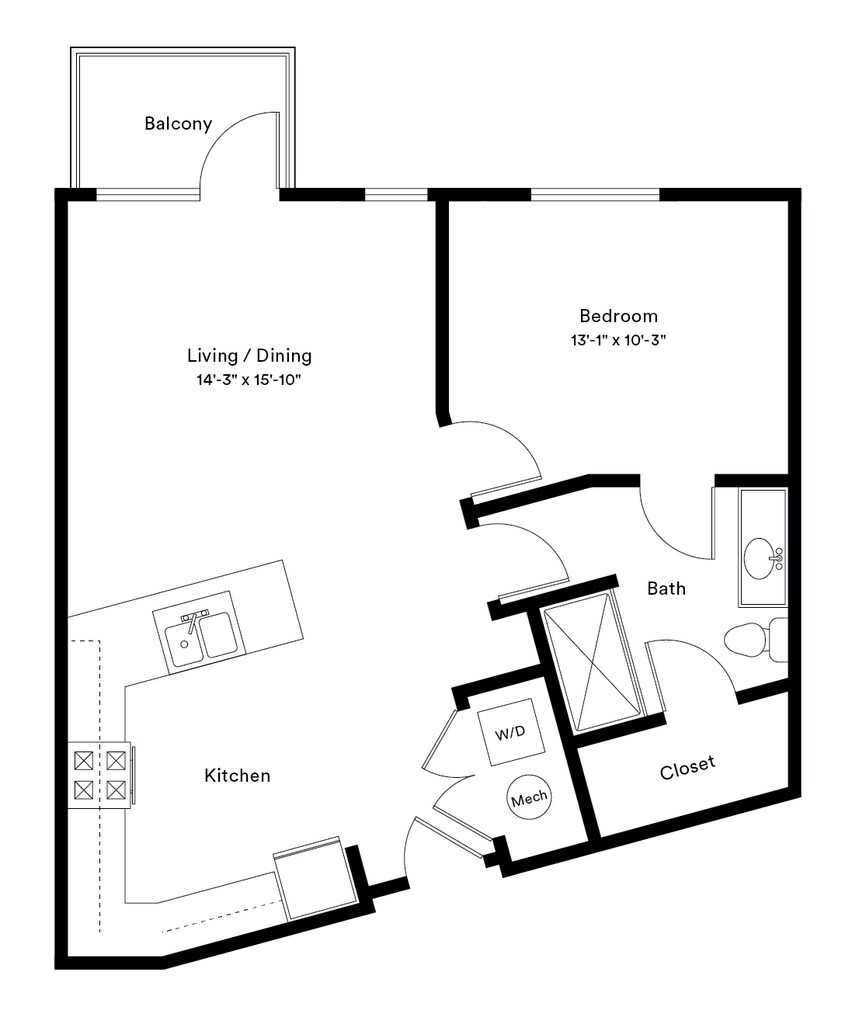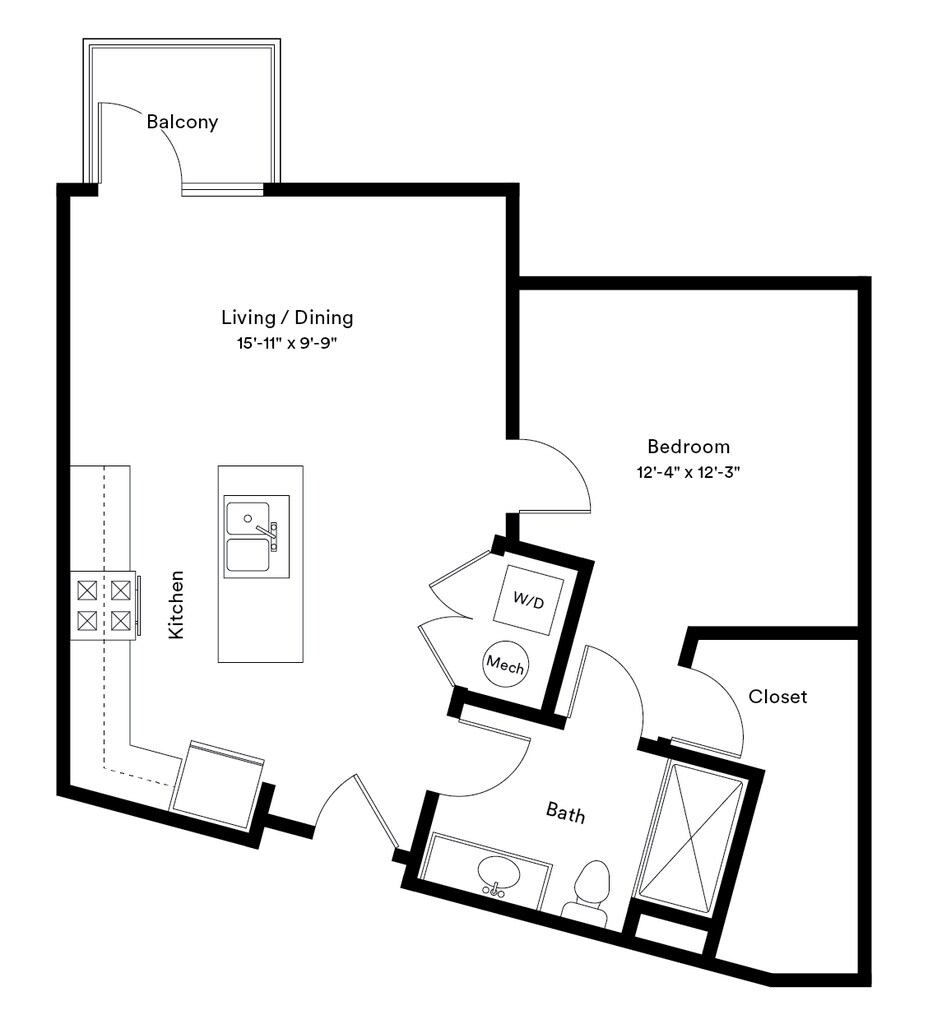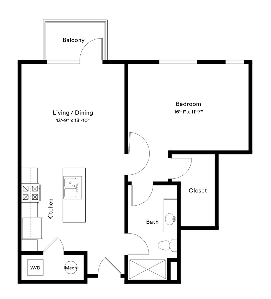 Studio, 1 Bath, 716 sq ftAvailable NowLargest StudioThis is the largest Studio at this PropertyModel Gallery