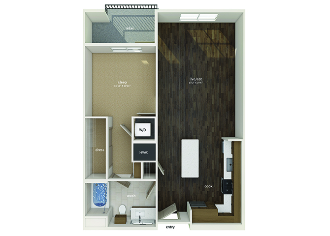 Apartment Model: S1Call For RatesStudio, 1 Bath, 604 sq ftUnavailableFloor plans are artist's rendering. All dimensions are approximate. Actual product and specifications may vary in dimension or detail. Not all features are available in every rental home. Prices and availability are subject to change. Base rent is based on monthly frequency. Additional fees may apply, such as but not limited to package delivery, trash, water, amenities, etc. Deposits vary. Please see a representative for details.