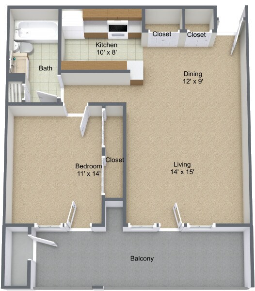 1 Bed, 1.5 Baths, 870 sq ftAvailable NowModel Gallery