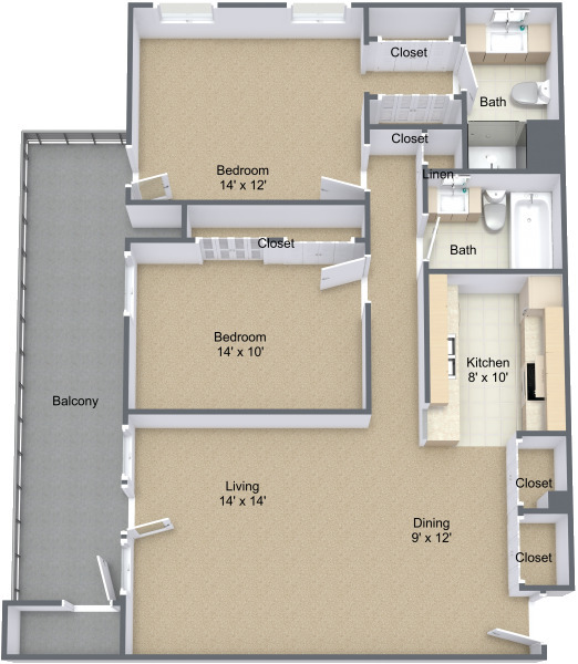 2 Beds, 2.5 Baths, 1237 sq ftAvailable NowLargest 2 BedroomThis is the largest 2 Bedroom at this PropertyModel Gallery