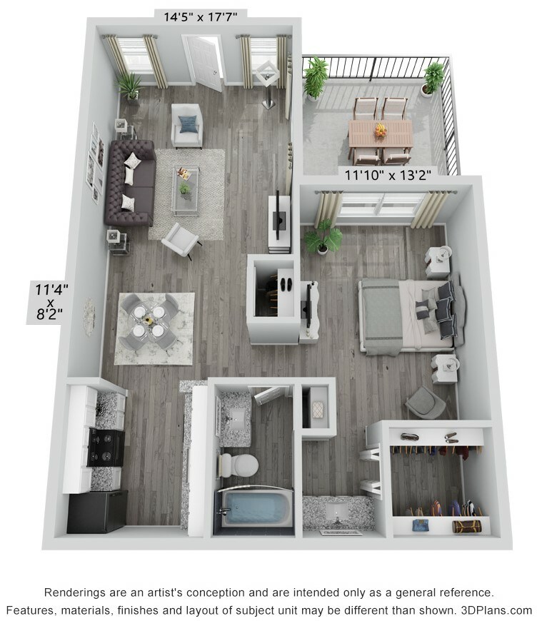 1 Bed, 1 Bath, 582 sq ftModel Gallery