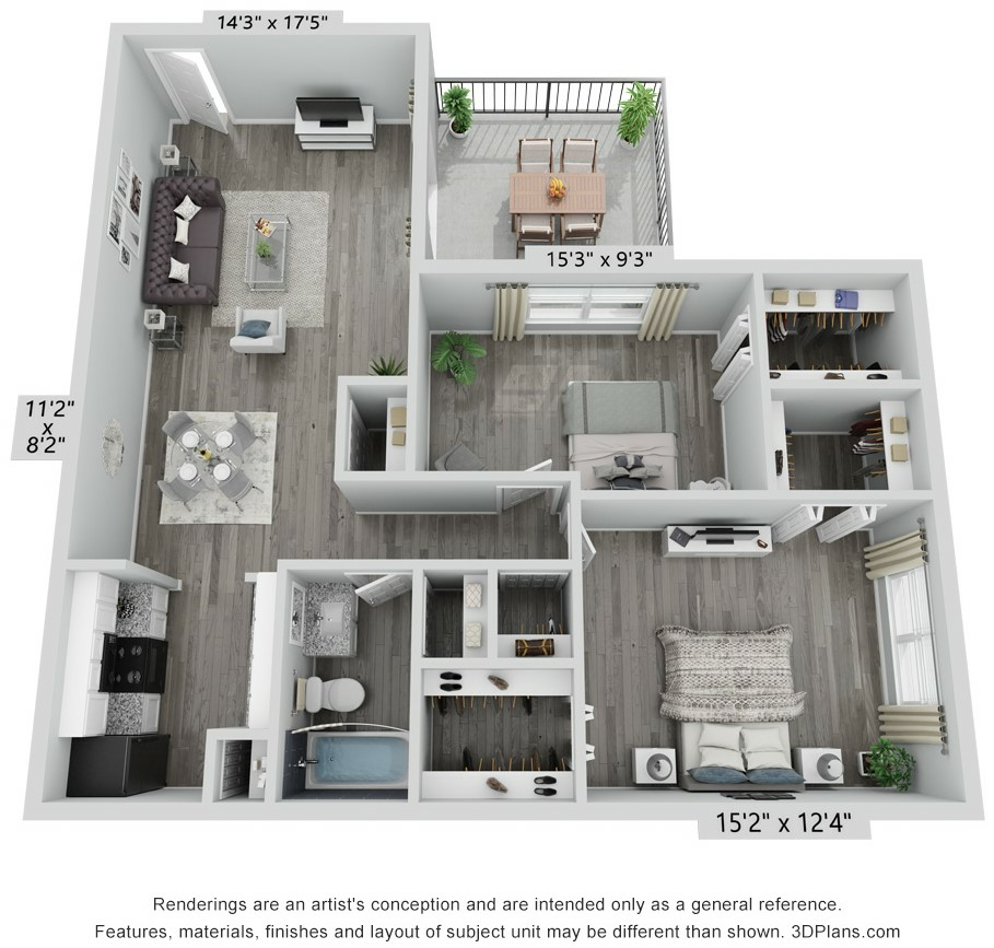 2 Bedroom, 1.5 Bathroom - Floorplan 1 Apartment Unit: 118CApartment Model: 2 Bedroom, 1.5 Bathroom2 Bedroom, 1.5 Bath, 1088 sq ftAvailable January 19, 20263 Bedrooms