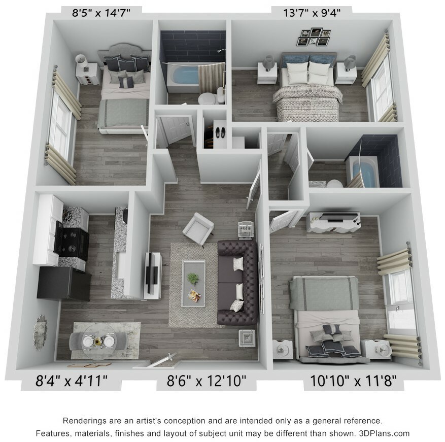 3 Beds, 2 Baths, 1120 sq ftModel Gallery