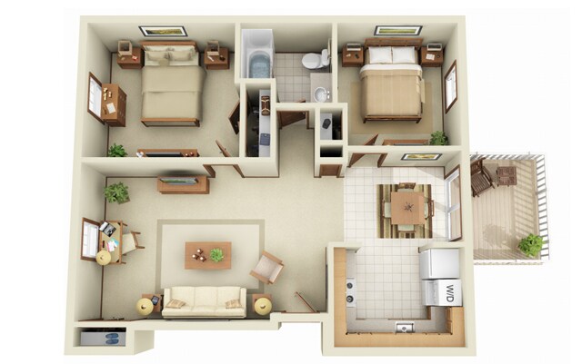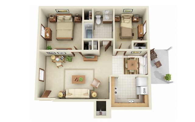 2 Beds, 1 Bath, 900 sq ftModel Gallery