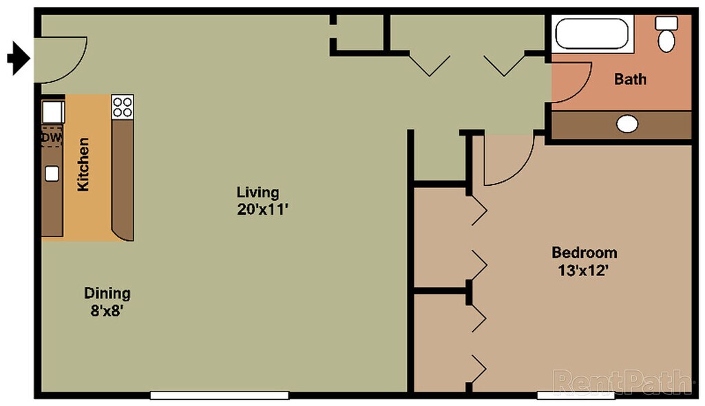 112 - 1 Bdrm, 1 Bath, 2nd Floor - Floorplan 1 ![]()