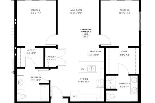400 Court St 1BR - Floorplan 1 400 Court St 1BR|1B Corner
