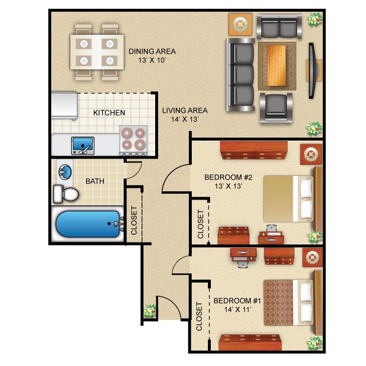 2 Beds, 1 Bath, 825 sq ftAvailable NowAvailability Details