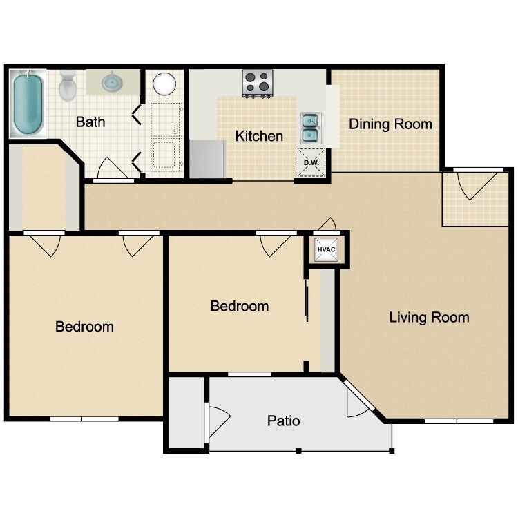2 Beds, 1 Bath, 900 sq ftModel Gallery