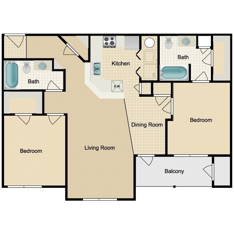Apartment Model: B22 Bedroom, 2 Bath, 1000 sq ftUnavailable![]()