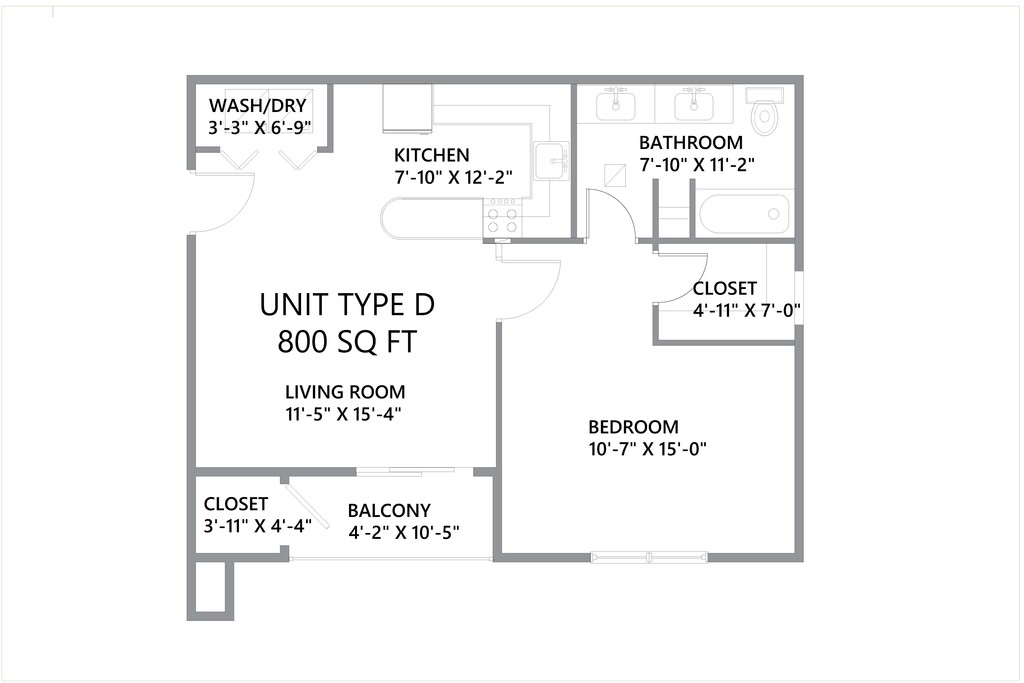 1 Bed 1 Bath 800sqft