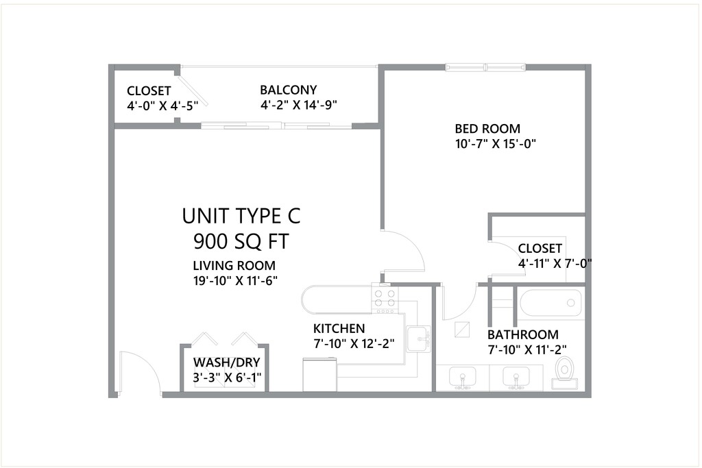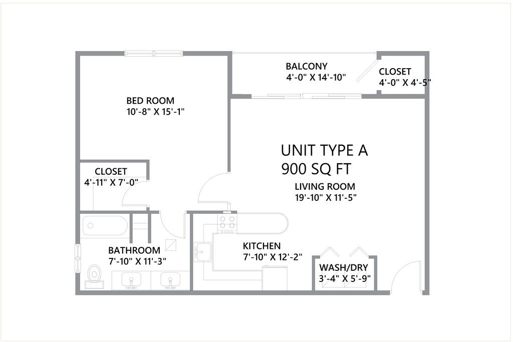 1Bed 1 Bath 900sqft - Floorplan 10 ![]()