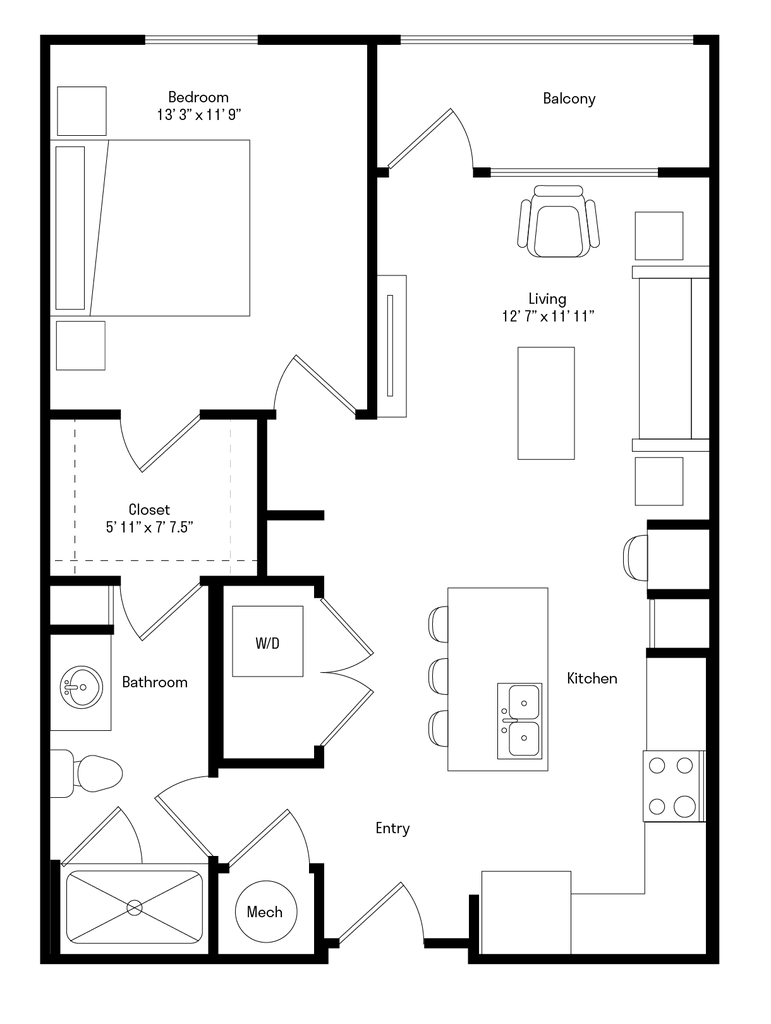 1 Bed, 1 Bath, 681 sq ftAvailable NowModel Gallery