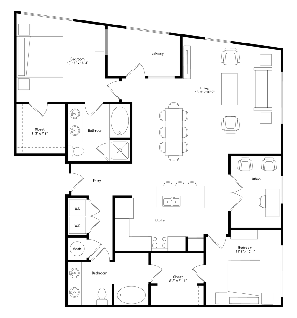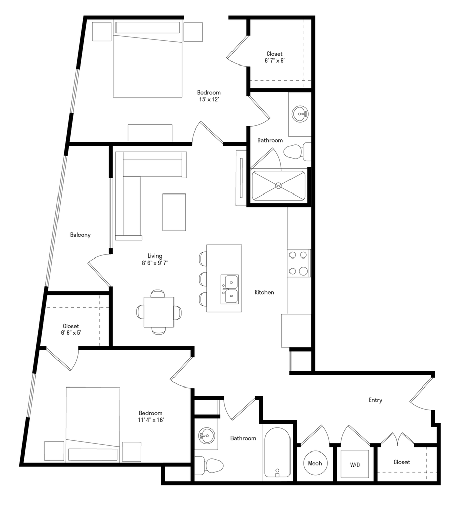 1 Bed, 1 Bath, 743 sq ftAvailable NowModel Gallery