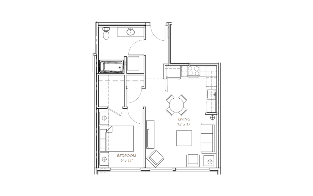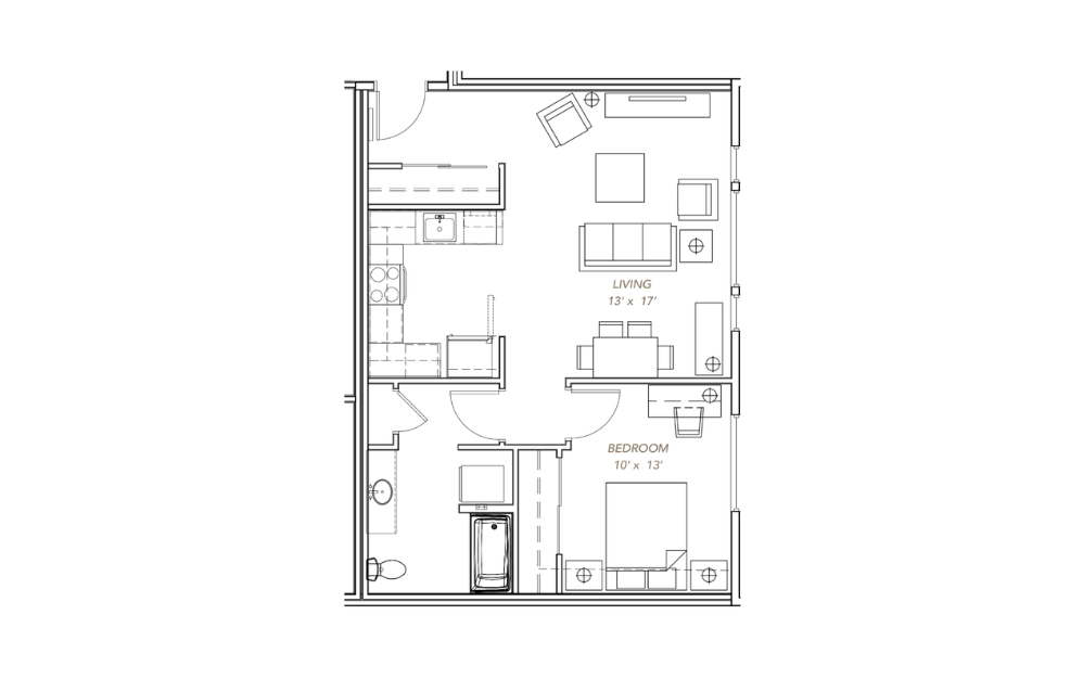 GLV - Open 1x1 - A16 - Floorplan Apartment Unit: N501Apartment Model: GLV - Open 1x1 - A161 Bedroom, 1 Bath, 640 sq ftAvailable NowGLV - 1x1 - B8