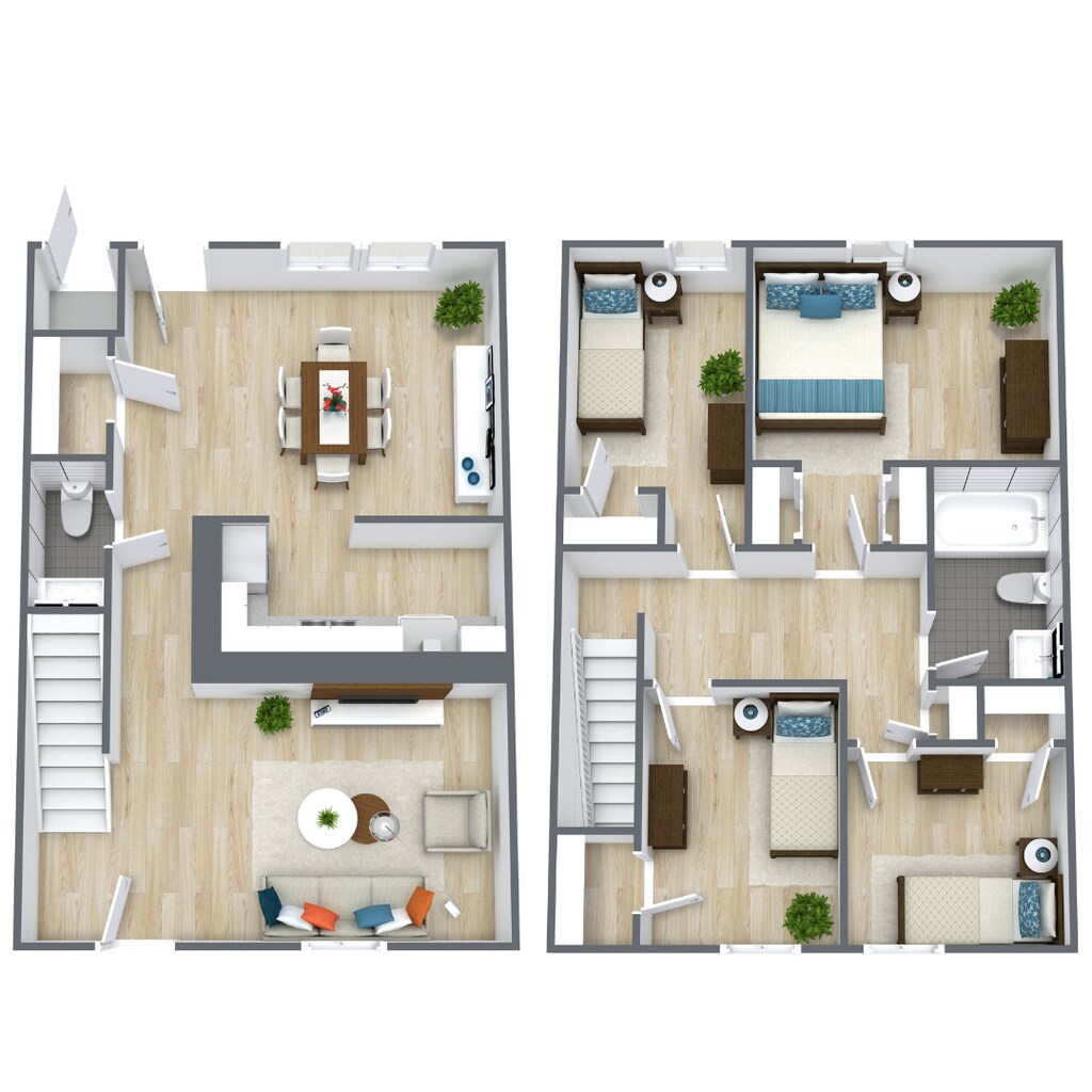 4 Beds, 1.5 Baths, 1330 sq ftModel Gallery