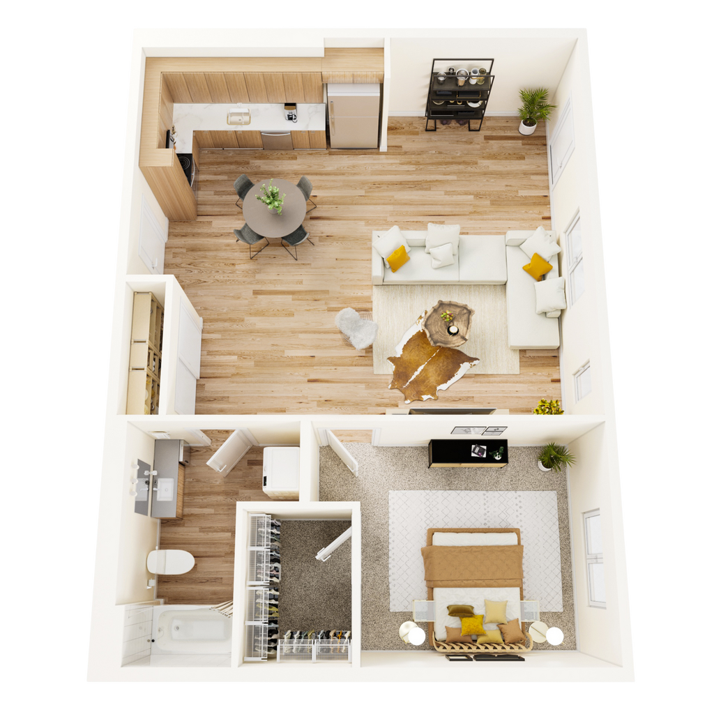 Studio, 1 Bath, 564-576 sq ftModel Gallery