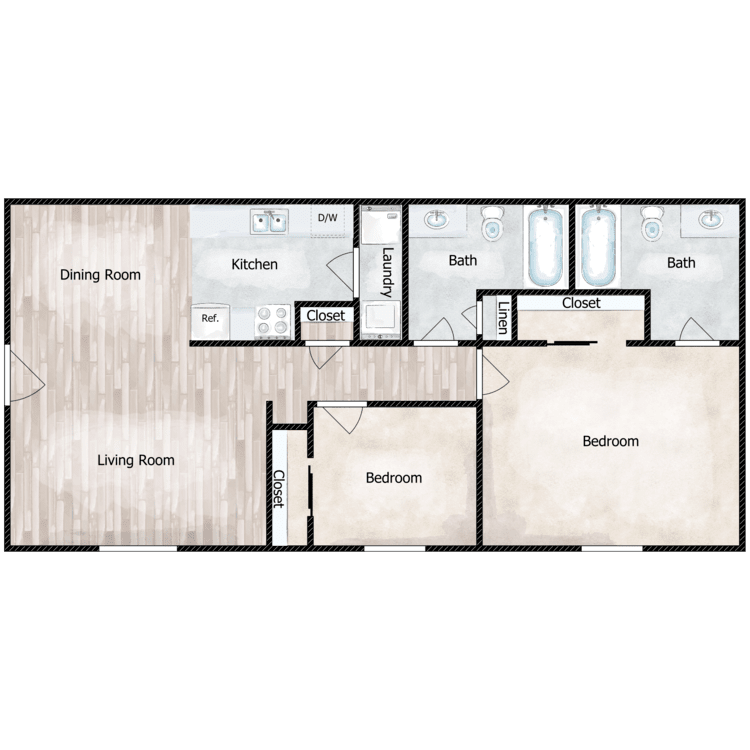 Apartment Model: 2 Bed 2 Bath2 Bedroom, 2 Bath, 888 sq ftAvailable NowFloorplansPhotos![]()