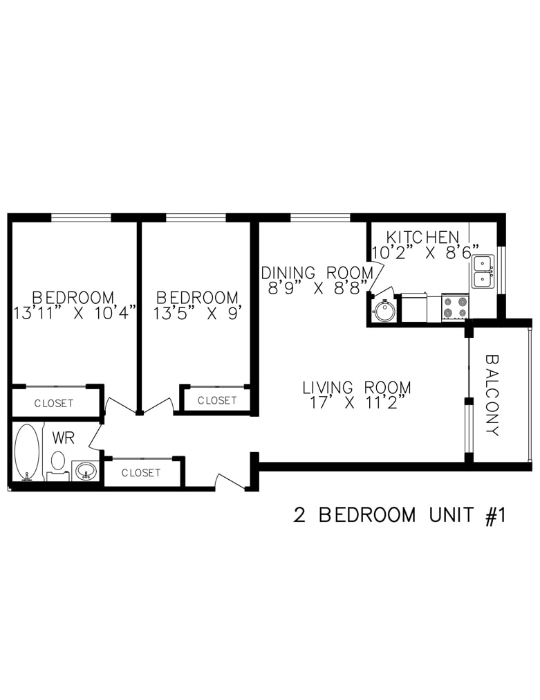 1 Bedroom - Floorplan 5 2 Bedrooms