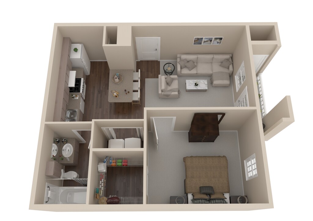 1 Bed, 1 Bath, 616 sq ftAvailable NowModel Gallery