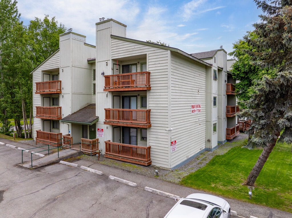 The one and two-bedroom apartments in this building located next to Russian Jack Park have their own private balconies. Each unit has its own gas furnace, dishwasher, washer, and dryer. Near East Anchorage High School and the Anchorage School District central office. Applicants must make 3 times the amount of rent and provide proof of income. Have at least 1 year of verifiable rental history No evictions, no collections, and no owing any properties money