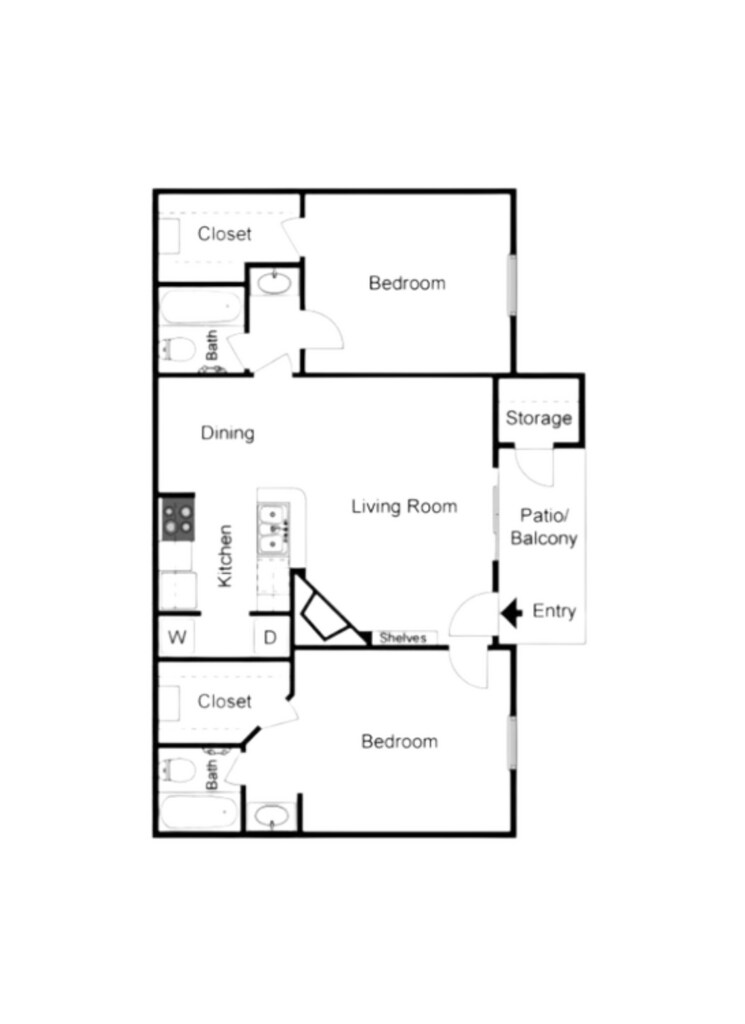 Apartment Model: A3D$1,2762 Bedroom, 1 Bath, 800 sq ftAvailable NowFloor plans are artist's rendering. All dimensions are approximate. Actual product and specifications may vary in dimension or detail. Not all features are available in every rental home. Please see a representative for details.