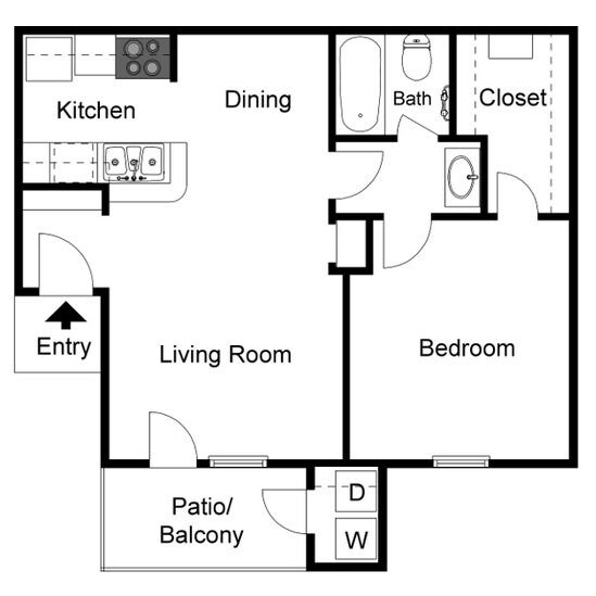1 Bed, 1 Bath, 540 sq ftModel Gallery