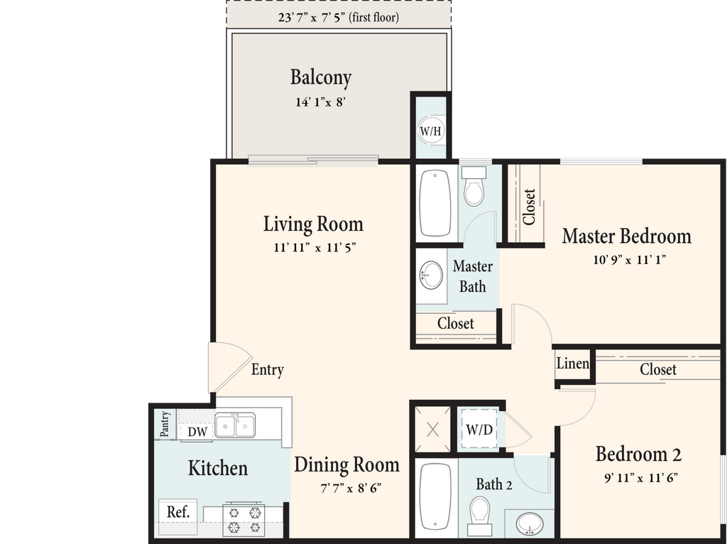 The Valley Way - Downstairs - Floorplan 1 Apartment Unit: 061Apartment Model: The Valley Way - Downstairs$3,0992 Bedroom, 2 Bath, 885 sq ftAvailable NowThe Valley Way - Upstairs