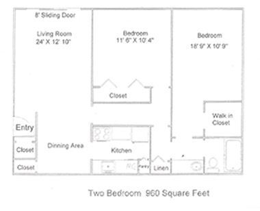 Apartment Model: 2 Bedroom 1 Bath2 Bedroom, 1 Bath, 960 sq ftAvailable Now![]()