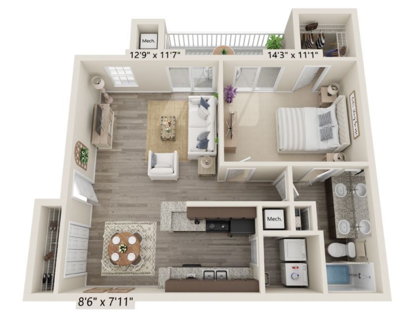 1 Bed, 1 Bath, 882 sq ftAvailable NowLargest 1 BedroomThis is the largest 1 Bedroom at this PropertyModel Gallery