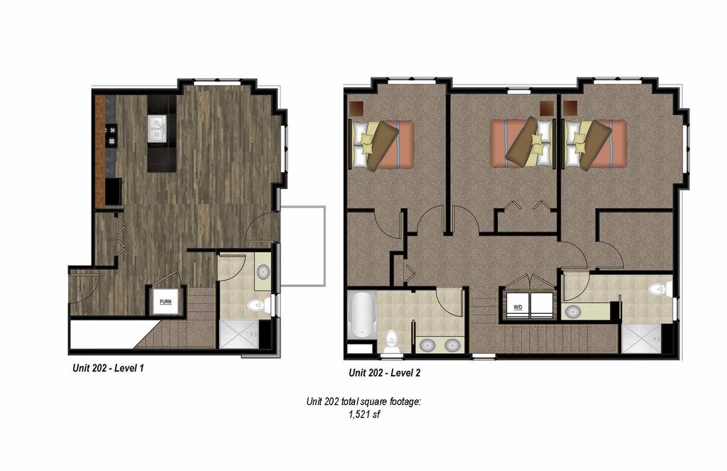 Apartment Model: Apartment 201$3,6953 Bedroom, 3 Bath, 1455 sq ftAvailable Now![]()
