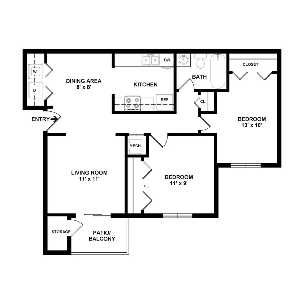 2 Beds, 1 Bath, 777 sq ftAvailable NowModel Gallery