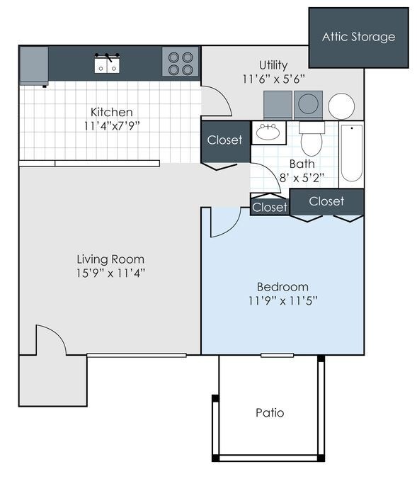 Apartment Model: The BristolStudio, 1 Bath, 288 sq ftUnavailableThe Bristol - Floorplan 1 1 Bedroom