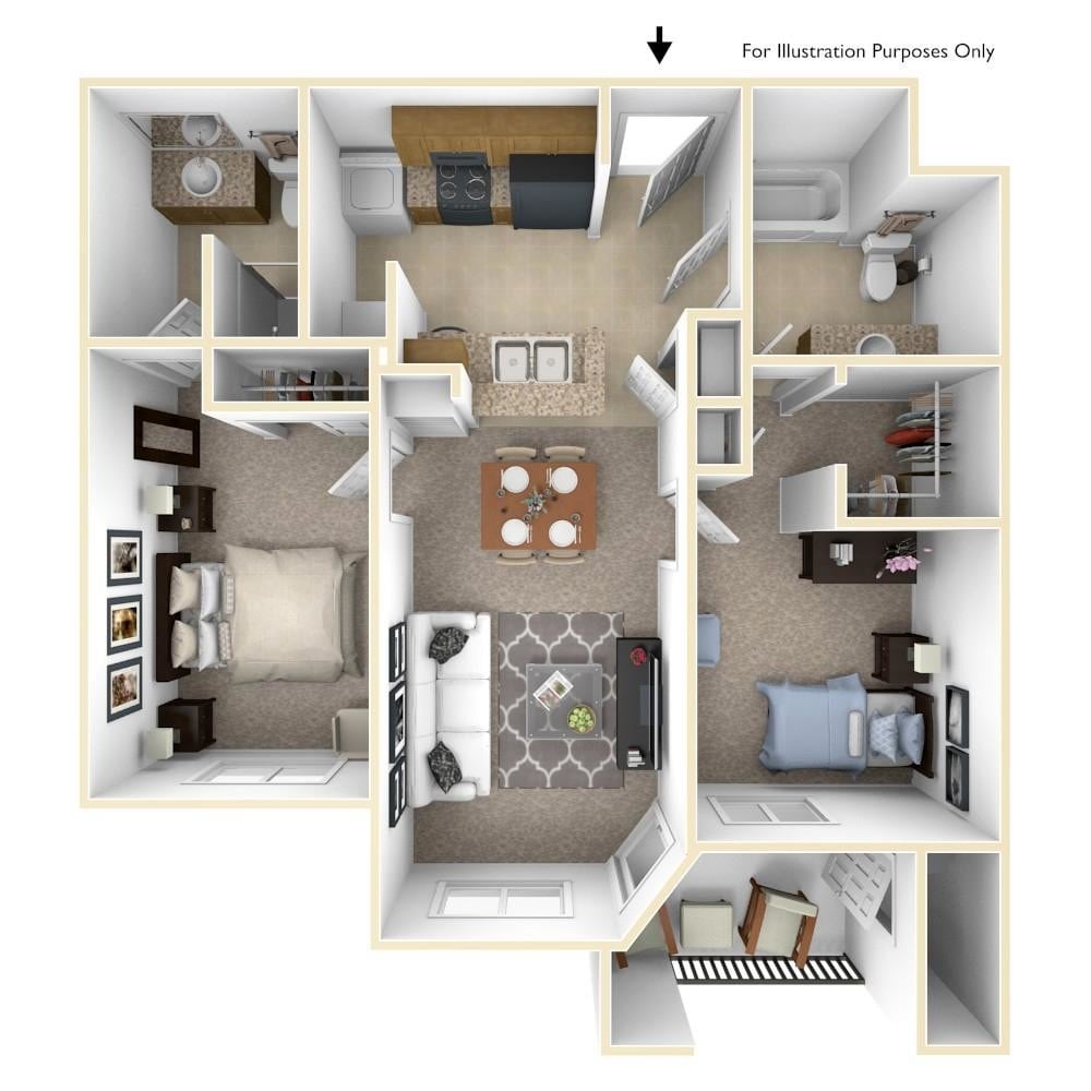 2 Beds, 2 Baths, 1021 sq ftAvailable NowModel Gallery