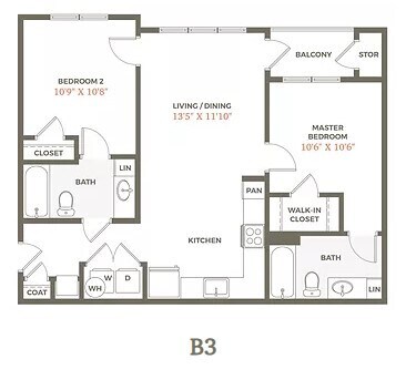 Apartment Model: B3 2x2From $1,2232 Bedroom, 2 Bath, 861 sq ftAvailable Now![]()