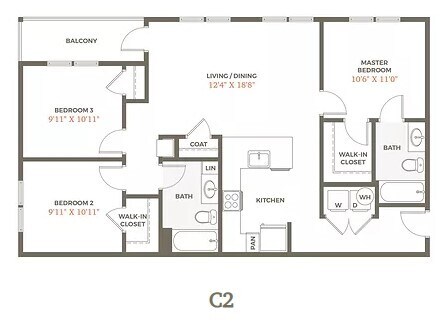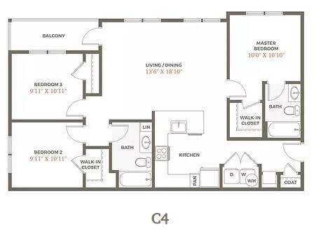 Apartment Model: C4 3x2From $1,4253 Bedroom, 2 Bath, 1105 sq ftAvailable Now![]()