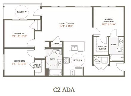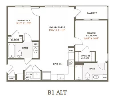 Apartment Model: B2 2x2From $1,2232 Bedroom, 2 Bath, 850 sq ftAvailable Now![]()