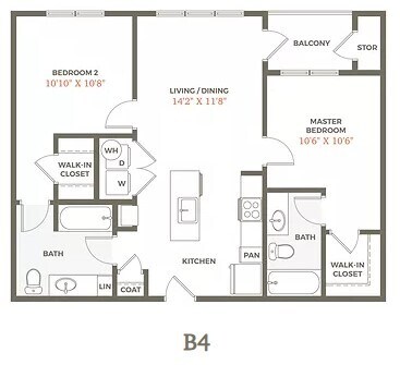 Apartment Model: B4 2X2From $1,2232 Bedroom, 2 Bath, 871 sq ftAvailable Now![]()