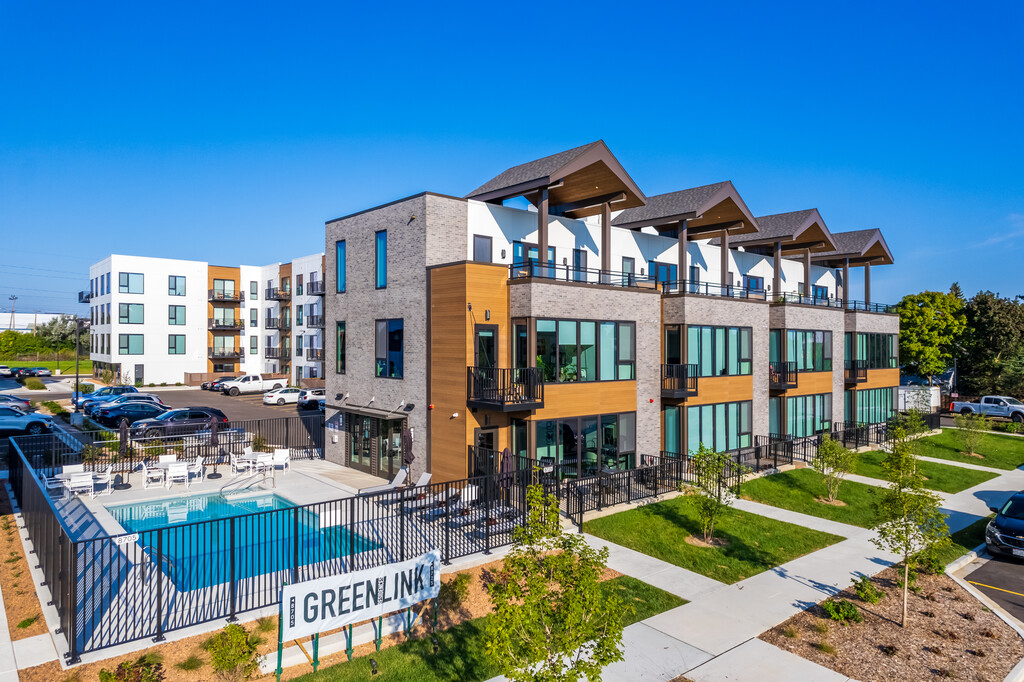 Discover comfort and community at Greenlink Residences. Our spacious floor plans feature premium kitchens with quartz countertops, wood-style flooring, and bright, modern finishes. Enjoy the Village Square, direct access to the Oak Leaf Trail, and the peaceful surroundings of Brown Deer. Greenlink combines modern living with a vibrant, socially connected community.
