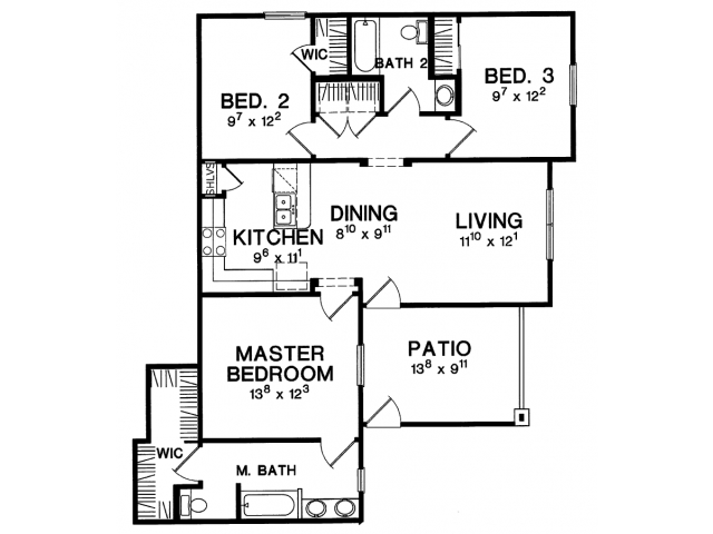Apartment Model: B2$1,3002 Bedroom, 2 Bath, 967-969 sq ftAvailable Now![]()