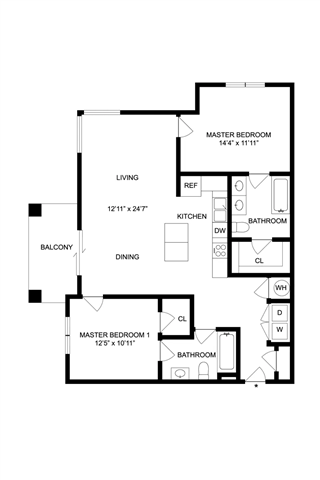 1 Bed, 1 Bath, 699 sq ftAvailable NowModel Gallery