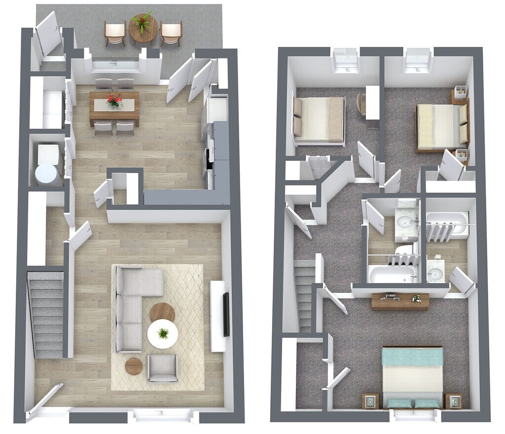 Apartment Model: Two Bedroom TownhomeFrom $1,4342 Bedroom, 2 Bath, 1093 sq ftAvailable Now![]()