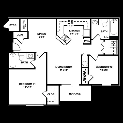Apartment Model: 2 BedroomFrom $1,5112 Bedroom, 2 Bath, 968 sq ftAvailable Now![]()