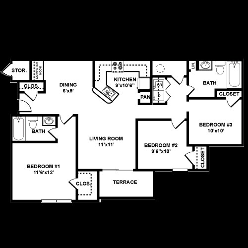 Apartment Model: 3 BedroomFrom $1,7503 Bedroom, 2 Bath, 1108 sq ftAvailable Now![]()