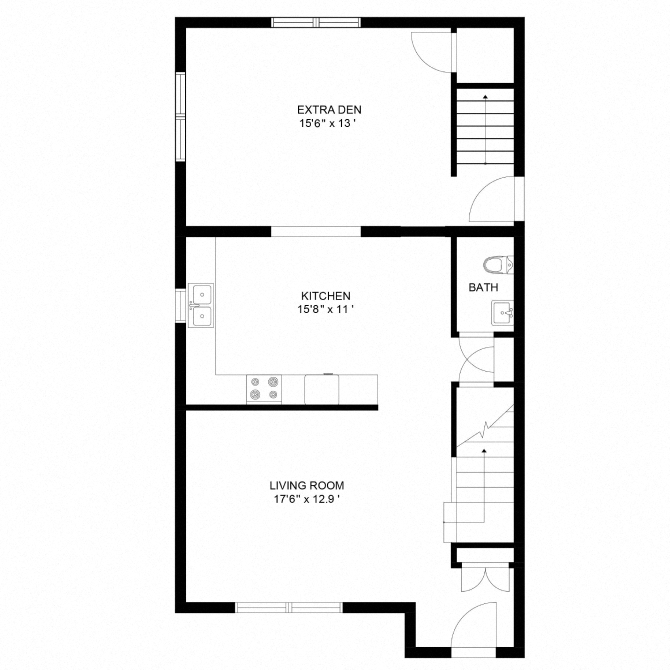 3 Bedroom, 1.5 Bath (B) - Floorplan 4 3 Bedroom, 1.5 Bath w/ Den (A)