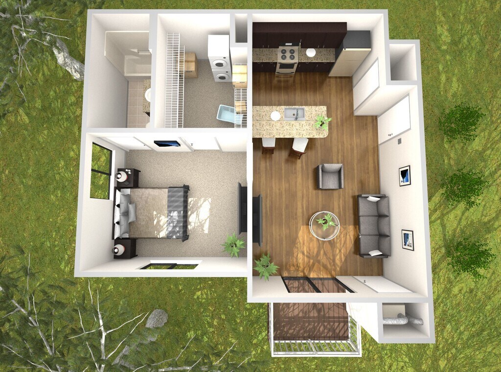 1 Bedroom Willow - Floorplan 1 1 Bedroom Cottonwood