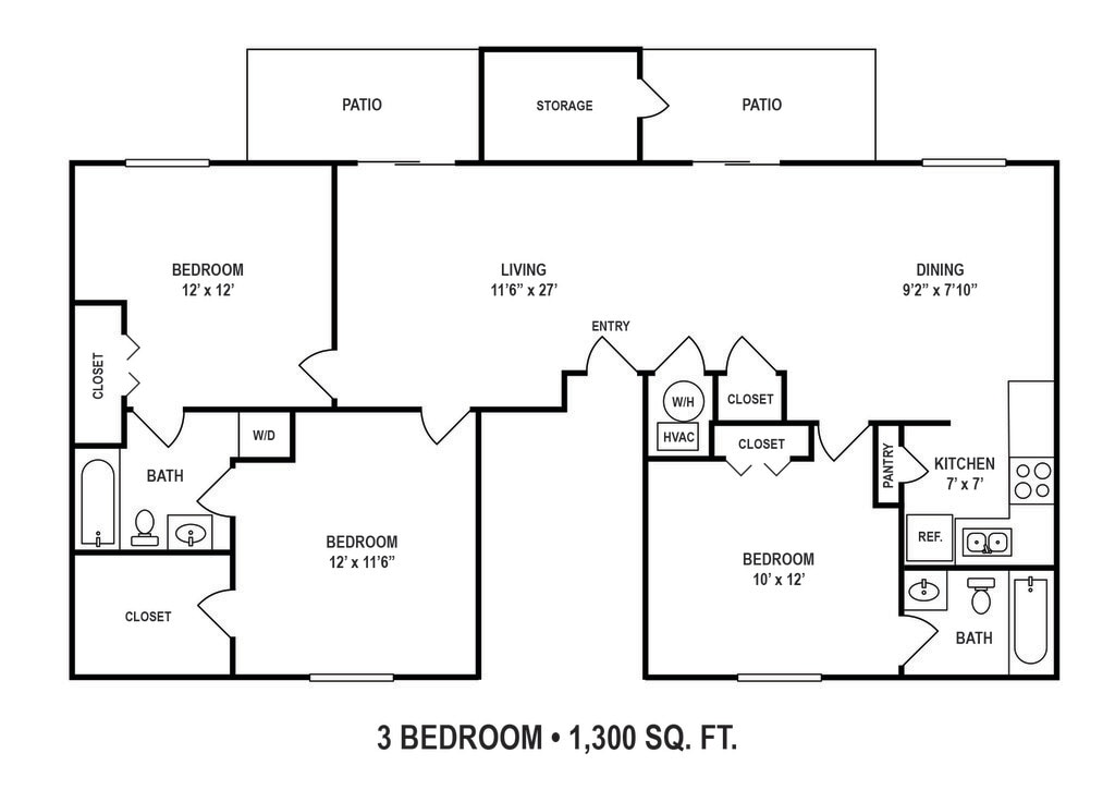 Apartment Model: 3 Bedroom 2 BathroomCall For Rates3 Bedroom, 2 Bath, 1300 sq ftUnavailable![]()