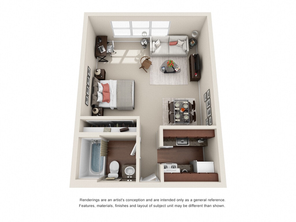 Studio, 1 Bath, 266 sq ftPlus FeesAvailable NowModel Gallery