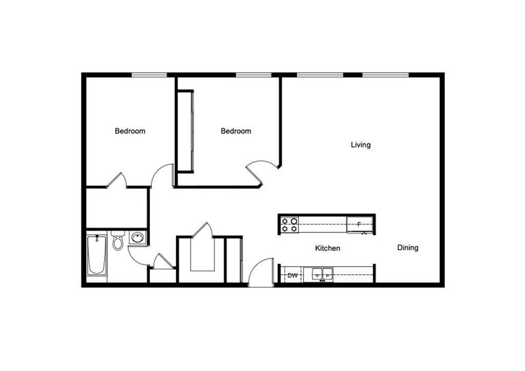 E - Floorplan 1 Apartment Unit: 203Apartment Model: E2 Bedroom, 1 Bath, 950 sq ftAvailable December 10, 2025![]()