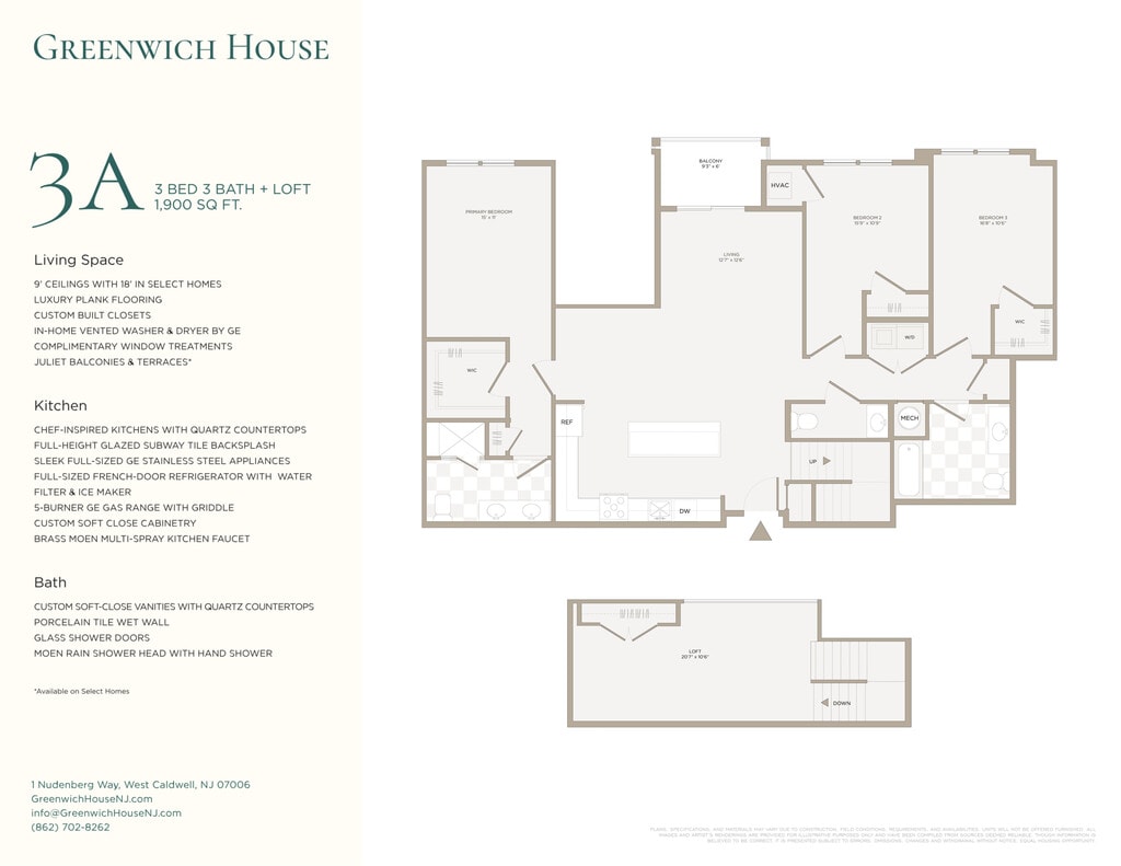Welcome to Greenwich House: Where Luxury Meets Sophistication Nestled in an exclusive residential neighborhood, Greenwich House redefines upscale living. Our meticulously designed townhomes and apartments offer spacious layouts, high-end finishes, and stunning views that elevate your everyday experience. Enjoy a suite of premium amenities, including a state-of-the-art fitness center, elegant communal lounges, and beautifully landscaped gardens. With fine dining, boutique shopping, and cultural attractions just moments away, Greenwich House combines the best of urban convenience with a serene retreat. Discover the ultimate in luxury living—welcome home to Greenwich House. Commuting is a breeze from Greenwich House, with easy access to major bus and transit lines to NYC and close proximity to Route 46, 80, 287. Whether you’re heading to work or exploring the vibrant surroundings, you’ll appreciate the seamless travel options available right at your doorstep. Additionally, the area boasts highly regarded schools, making it an ideal choice for families seeking quality education. Greenwich House proudly boasts these amazing features: - Oversized Floor Plans - 9' Ceilings Throughout - Private Garages with extra storage space - Large decks/balconies - Electrical Vehicle charging outlets on site - White Quartz counter tops in kitchen and bathrooms - GE stainless steel refrigerator, including icemaker and hood range vented to outside - GE Built-In Microwaves in Islands - GE full washers and dryers - Designer ceramic tile in bathrooms - Genuine Moen faucets in kitchen and baths - Luxury wood-look plank floors